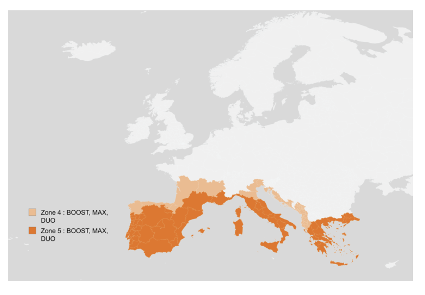 *The grey areas above correspond to areas where thermal performance is not economically viable in relation to the estimated investment cost for a collective project (standard conditions)