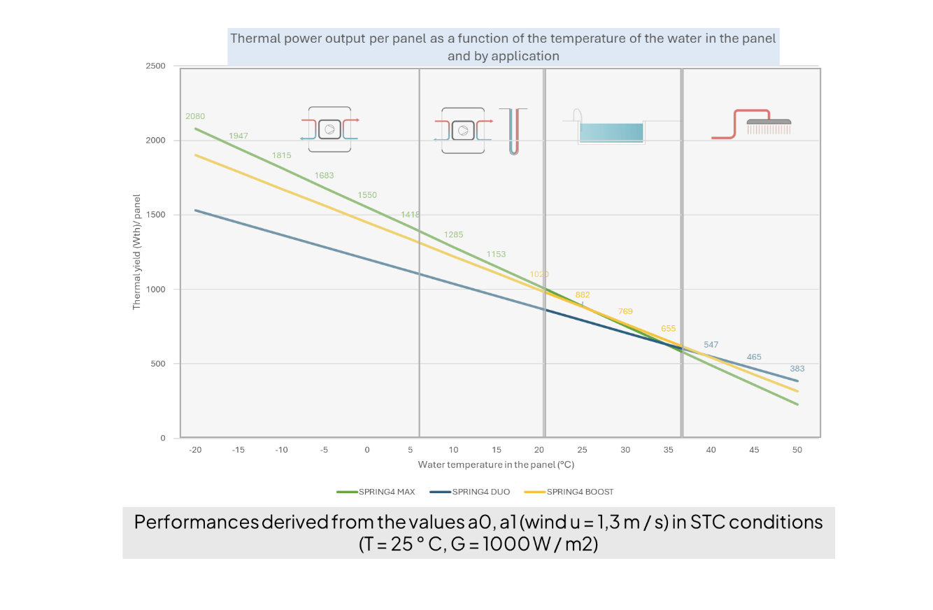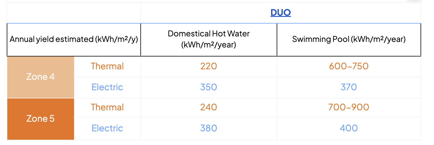 Given that temperatures between 30 and 45°C circulate in hybrid panels in summer, these ratios are not exhaustive. It should be noted that the panels deliver an average power of 500 to 800 Wth.