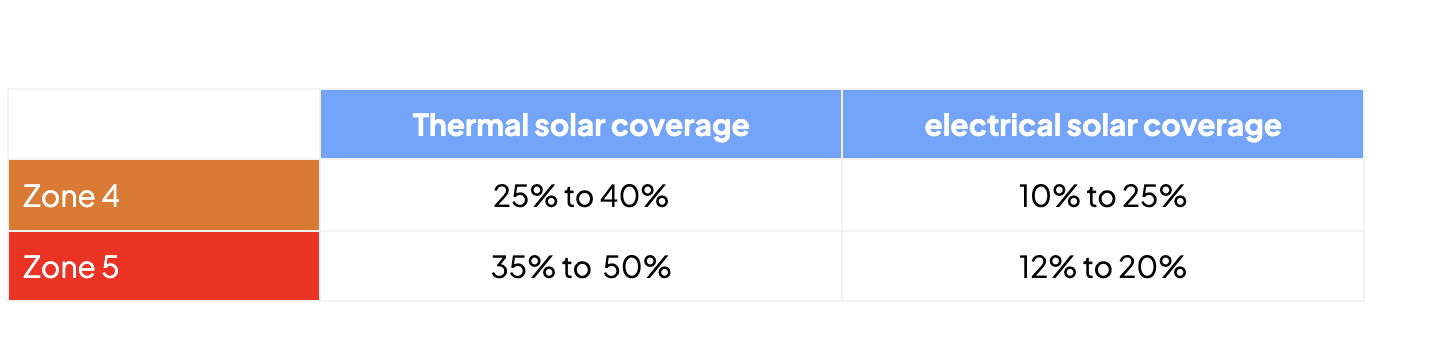*The electricity coverage rate corresponds to the self-production considered for the electrical backup. Part of the DHW generator's consumption is reduced thanks to the heat input from the hybrid panels, and another part is reduced thanks to the self-consumption of the electricity produced.