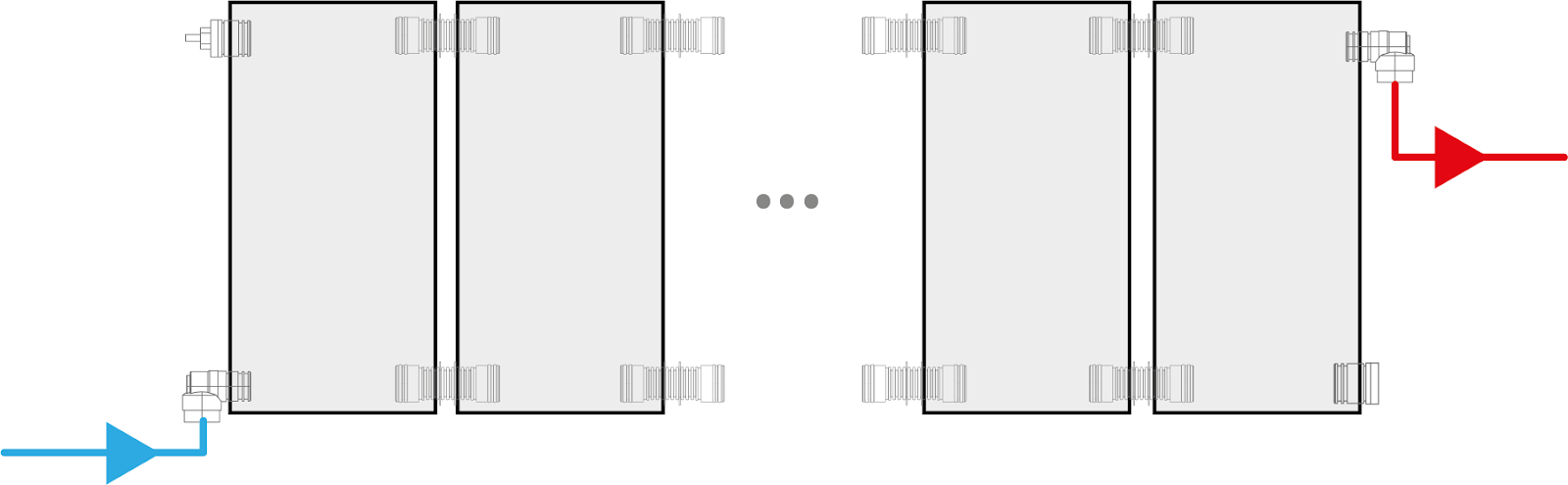 Figure 8: Landscape installation with hydraulic connection via T-pieces to avoid hydraulic series connection of the panels