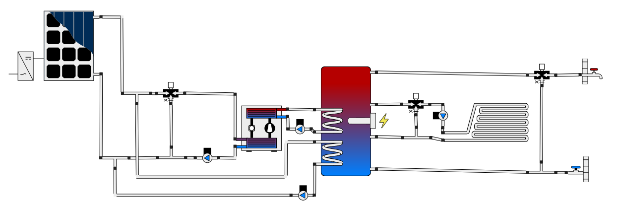 Here is the technical diagram corresponding to this option in the case where the DHW and heating storage are in the same "combi" tank: