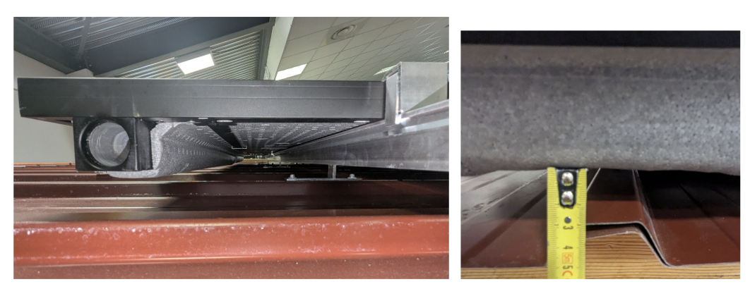 Un espacement de 30 mm entre la partie isolée du manifold du SPRING4 isolé et l’onde du bac acier. Cela implique donc une hauteur total de 110 mm entre le haut du cadre du panneau et l’onde du bac acier
