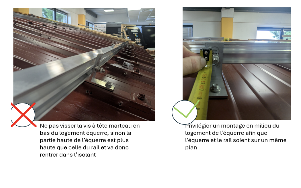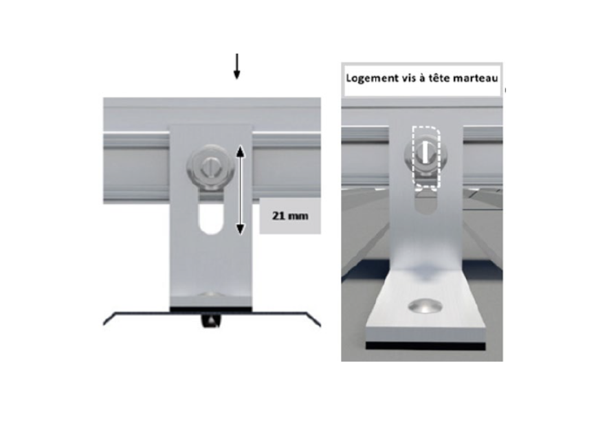 ⚠️ Le positionnement de la vis à tête marteau dans le logement de l’équerre est très important.